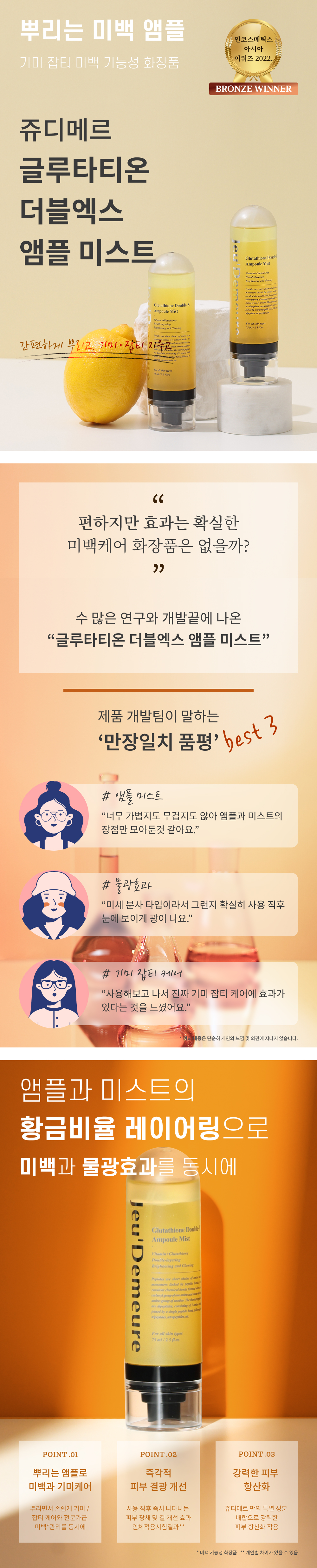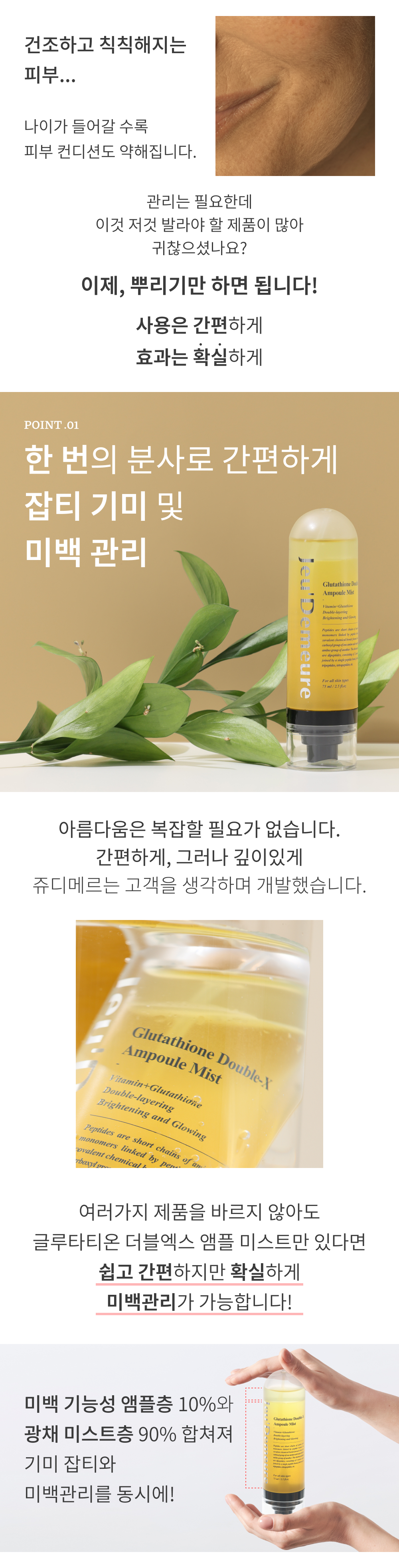✔ 한 번의 분사로 간편하게 잡티, 기미 및 미백관리